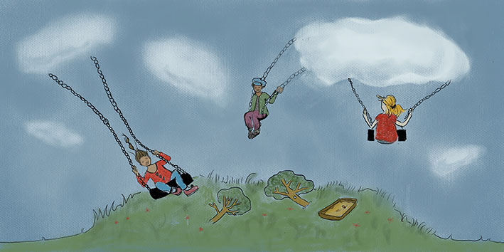 Som barn blev jag ofta utskälld av lärarna då jag klottrade hela bänken full med figurer. Men jag kunde inte låta bli. Sen blev jag vuxen och pluggade foto och kreativt skrivande. Mina bilder växer fram med hjälp av kritor, penslar och kanske ett inklistrat foto. Något mitt hjärta bultar lite extra för är att skapa magi mellan text och illustration i en bilderbok. Jag är allergisk mot det perfekta, men omfamnar det skeva, knöggliga, lekfulla och humoristiska. I fantasin ritar jag fortfarande på bänkarna.