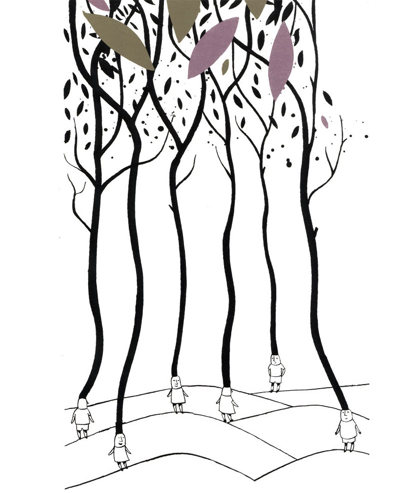 Metallic colours and black and white illustrations.